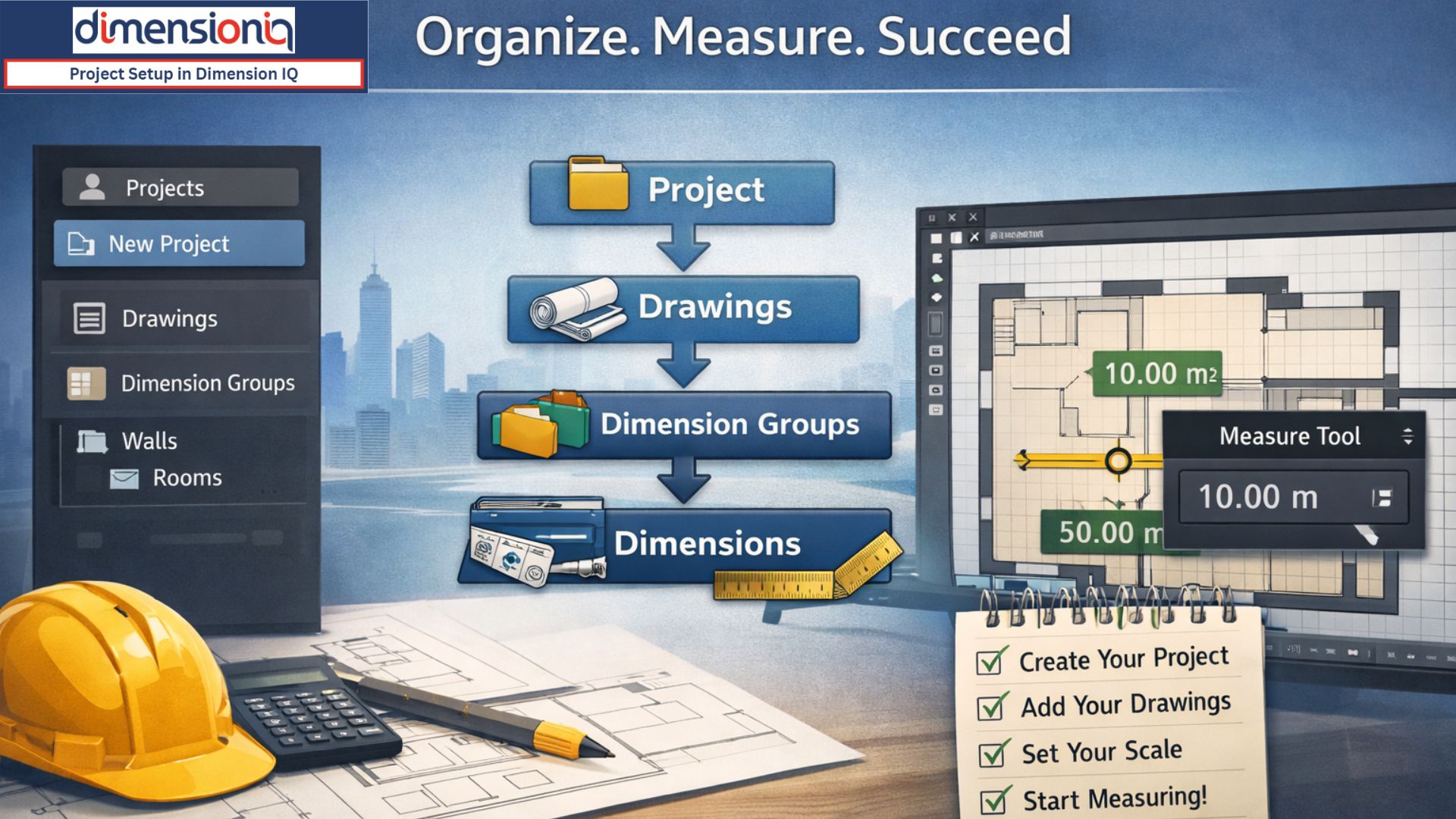 Every accurate takeoff begins with a solid foundation. In DimensionIQ, that foundation is your project setup. While the tools for measuring are powerful, the real efficiency comes from how well your workspace is structured before you even take your first measurement.