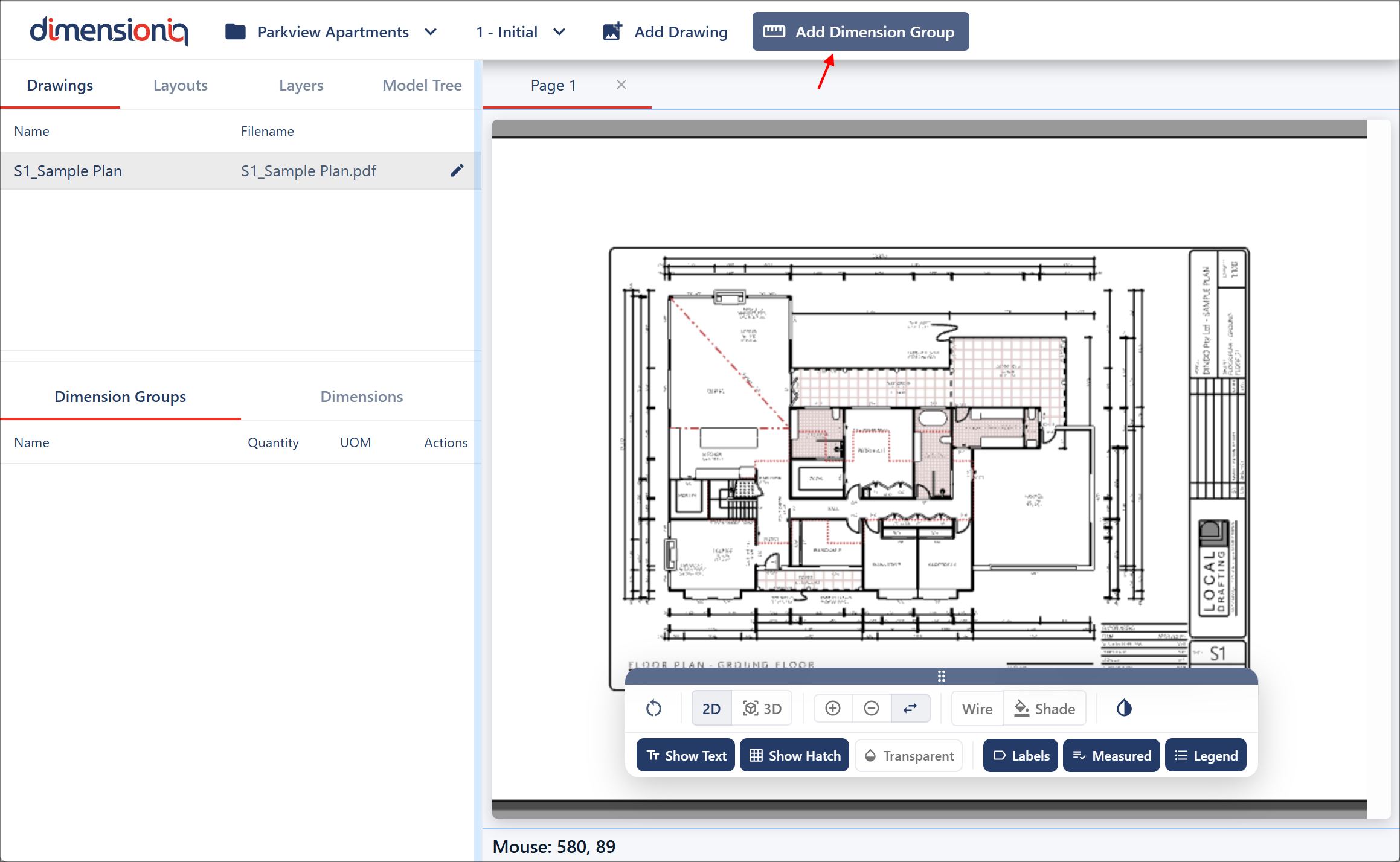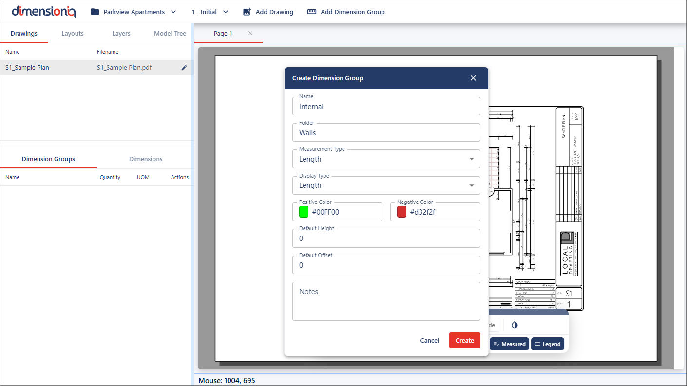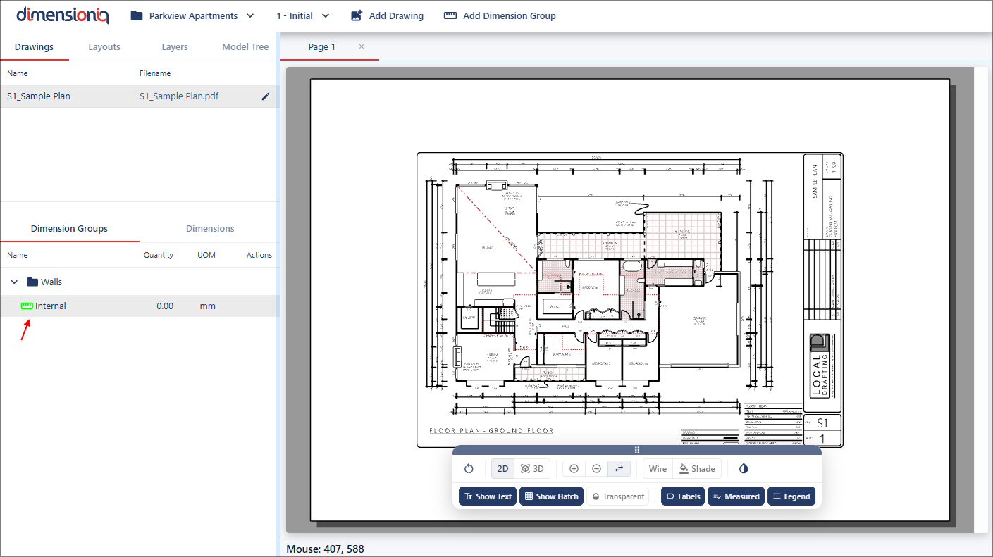 Dimension groups are configured after drawings have been loaded and layouts have been scaled or calibrated. This ensures that all measurements created within DimensionIQ are accurate, consistent, and aligned with the project's real-world dimensions.