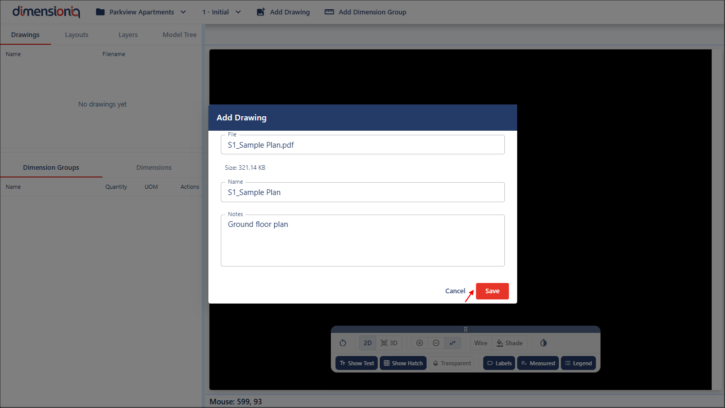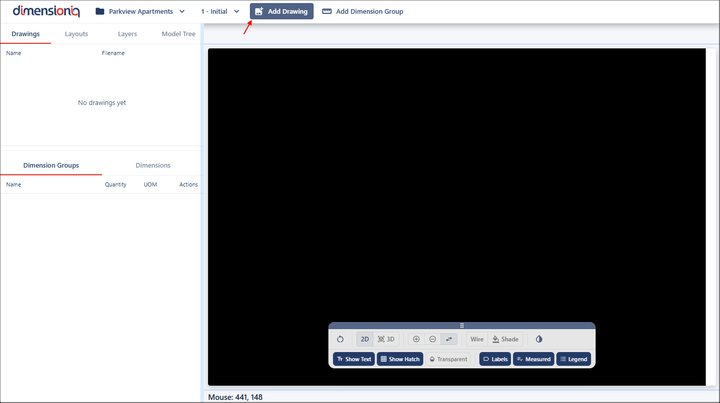 After adding a project, the next step is to add drawings to the project. Drawings contain the plans or layouts that will be used for measurement. Each drawing file can contain multiple layouts, allowing you to measure different sheets within the same project.